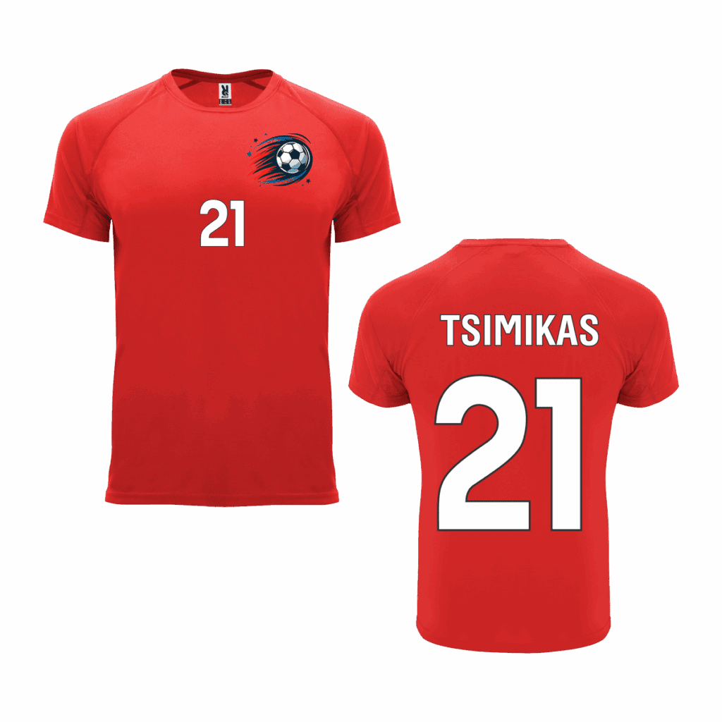 Παιδική μπλούζα ποδοσφαίρου Τσιμίκας σε κόκκινο χρώμα για ηλικίες από 4 έως και 16 ετών από 100% πικέ πολυεστέρα 135g/m². Συμβουλευτείτε το μεγεθολόγιο στην γκαλερί φωτογραφιών του προϊόντος. Κοντά μανίκια, πλαϊνές ραφές, μανικοκόλληση, στρογγυλή λαιμόκοψη και γρήγορο στέγνωμα. Αναπνέον ύφασμα, τεχνικό μπλουζάκι, εξαιρετική ποιότητα κατασκευής.