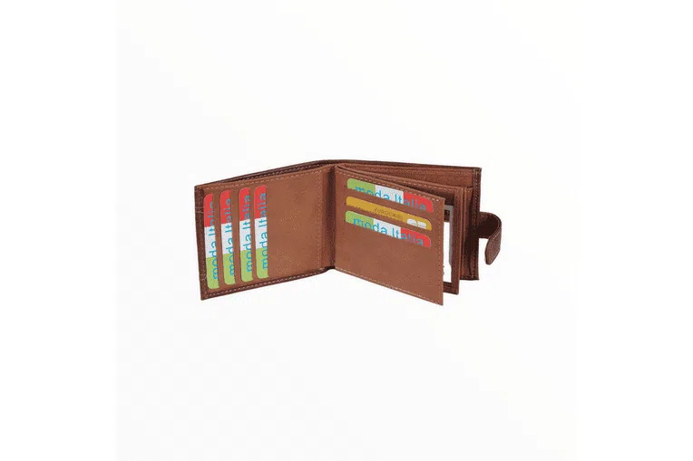 Ανδρικό πορτοφόλι με 10 θήκες για κάρτες σε 2 διαφορετικές αποχρώσεις, εσωτερική θήκε με φερμουάρ, θήκη κερμάτων, 2 θήκες για φωτογραφίες ή δίπλωμα οδήγησης και εξωτερικό κούμπωμα. Εξαιρετική ποιότητα κατασκευής.