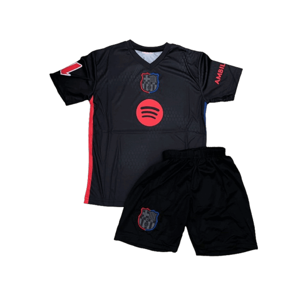 Σετ ποδοσφαίρου Lamine Yamal Barcelona εκτός έδρας εμφάνιση σε μαύρο χρώμα. Το σετ περιλαμβάνει τη μπλούζα και το σορτσάκι. Τα μεγέθη αντιστοιχούν στην ηλικία του παιδιού. Συμβουλευτείτε το μεγεθολόγιο στην συλλογή εικόνων του προϊόντος. Εξαιρετική ποιότητα κατασκευής.