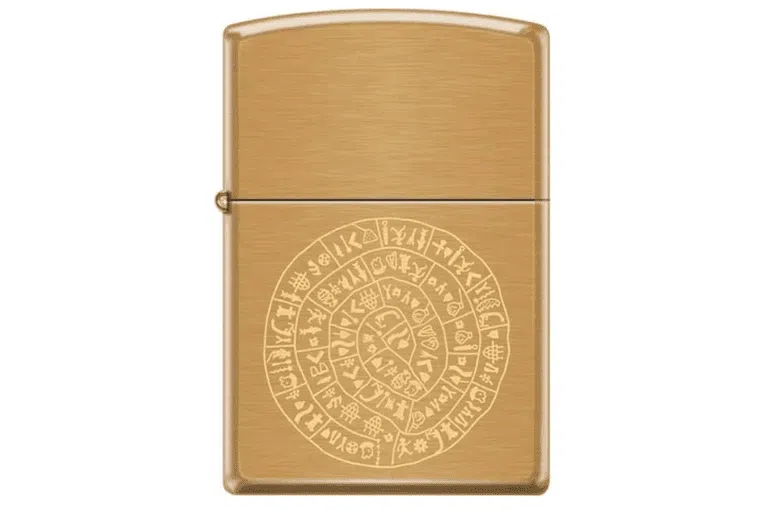 Festos Disc Gold Zippo. Αναπτήρας Zippo με φινίρισμα Brushed Brass με τον Δίσκο της Φαιστού.