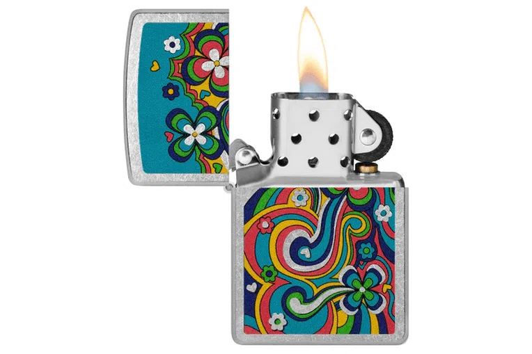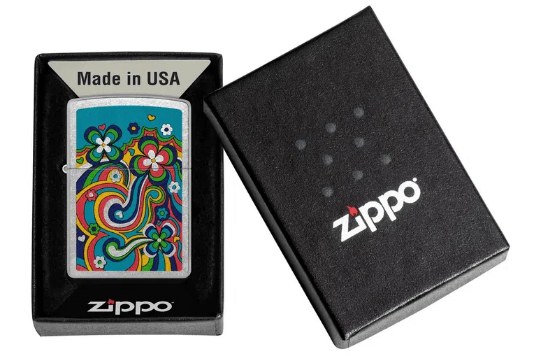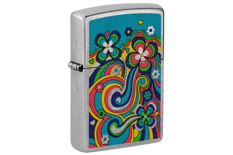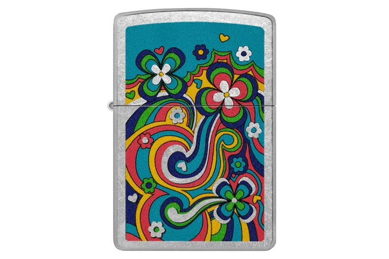 Flower Power Design Zippo. Funky λουλουδάκια στροβιλίζονται παιχνιδιάρικα σε αυτόν τον κλασικό αναπτήρα Street Chrome σε ένα απολαυστικό σχέδιο Color Image.