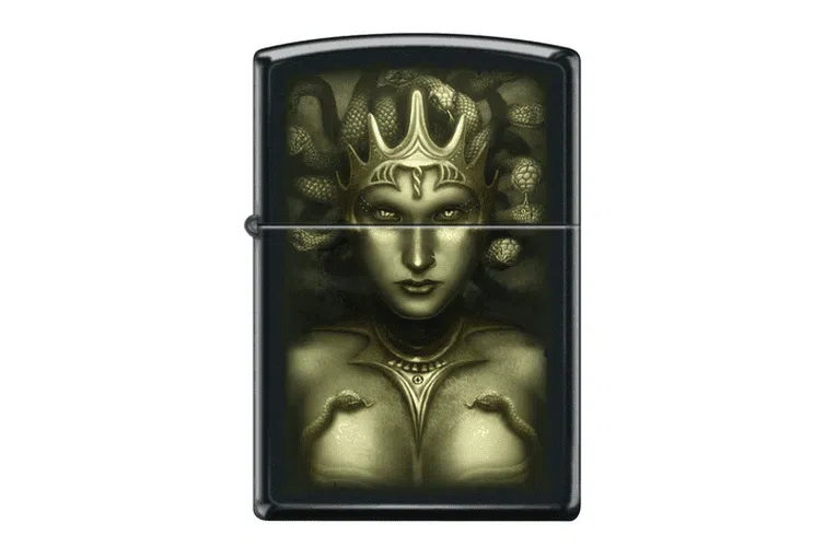 Medusa Zippo. Κλασικό σχέδιο μαύρου αναπτήρα Zippo με σχέδιο το κεφάλι της Μέδουσας.