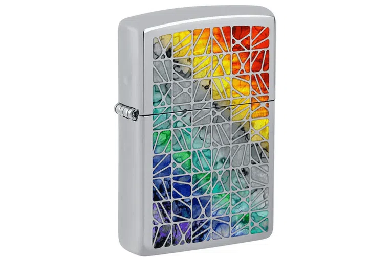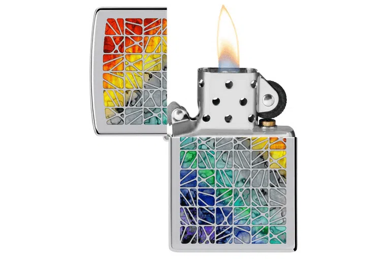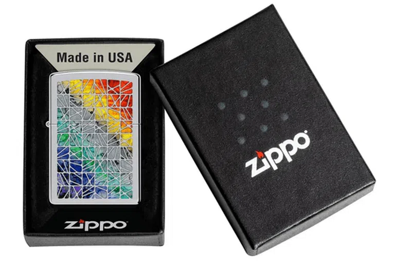 Ένα καλειδοσκόπιο χρωμάτων λαμπυρίζει σε όλη την επιφάνεια αυτού του αναπτήρα High Polish Chrome, που συμπληρώνεται από μαγευτικούς μεταλλικούς τόνους χάρη στη διαδικασία Fusion. Διατίθεται συσκευασμένο σε συσκευασία δώρου. Για βέλτιστη απόδοση γεμίστε με καύσιμο αναπτήρα Zippo.