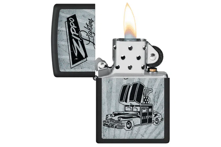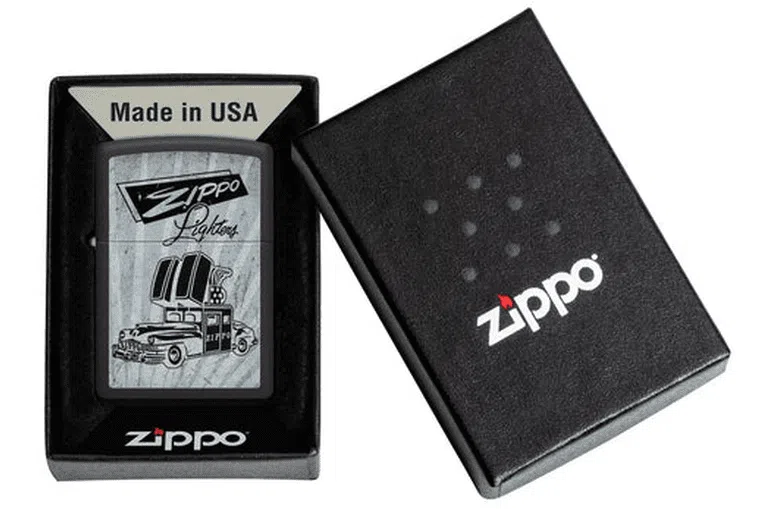 Αυτό το ρετρό σχέδιο είναι εμπνευσμένο από από τα κλασικά σύμβολα του Zippo σε έναν Black Matte αναπτήρα. Ένα vintage λογότυπο Zippo είναι αγκυρωμένο στο εμβληματικό αυτοκίνητο Zippo σε αυτό το μονόχρωμο σχέδιο Color Image. Διατίθεται συσκευασμένο σε συσκευασία δώρου. Για βέλτιστη απόδοση, γεμίστε με καύσιμο αναπτήρα Zippo.